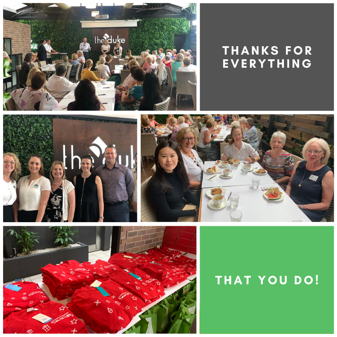 On Monday 25th we again for the 5th year championed the JHCH Volunteer Thank You Morning Tea for the 100+ volunteers that dedicate their time to the hospital. This is an event that we coordinate yearly to give back something to those that give so much to children and families when they need it most. Over the course of the year 9,000 plus hours are worked by volunteers.